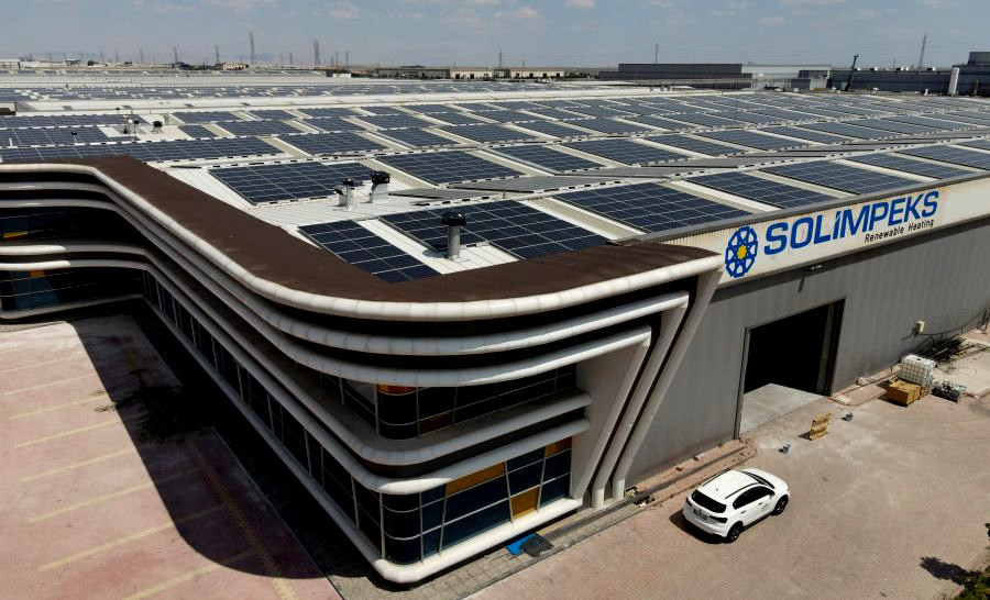 New Solimpeks factory for enamelled tanks with a capacity of 150,000 units per year and a heat pump assembly line for 30,000 units annually. The electricity demand of the new factory is covered by a 1.4 MW PV generator on the roof.